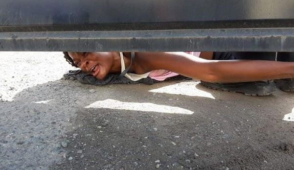 Wanita itu berasal dari Haiti, sanggup baring di lantai berdekatan pagar di pusat tahanan pendatang di Tapachula, Chiapas, Mexico, memohon mereka (pendatang) diberikan keadilan.